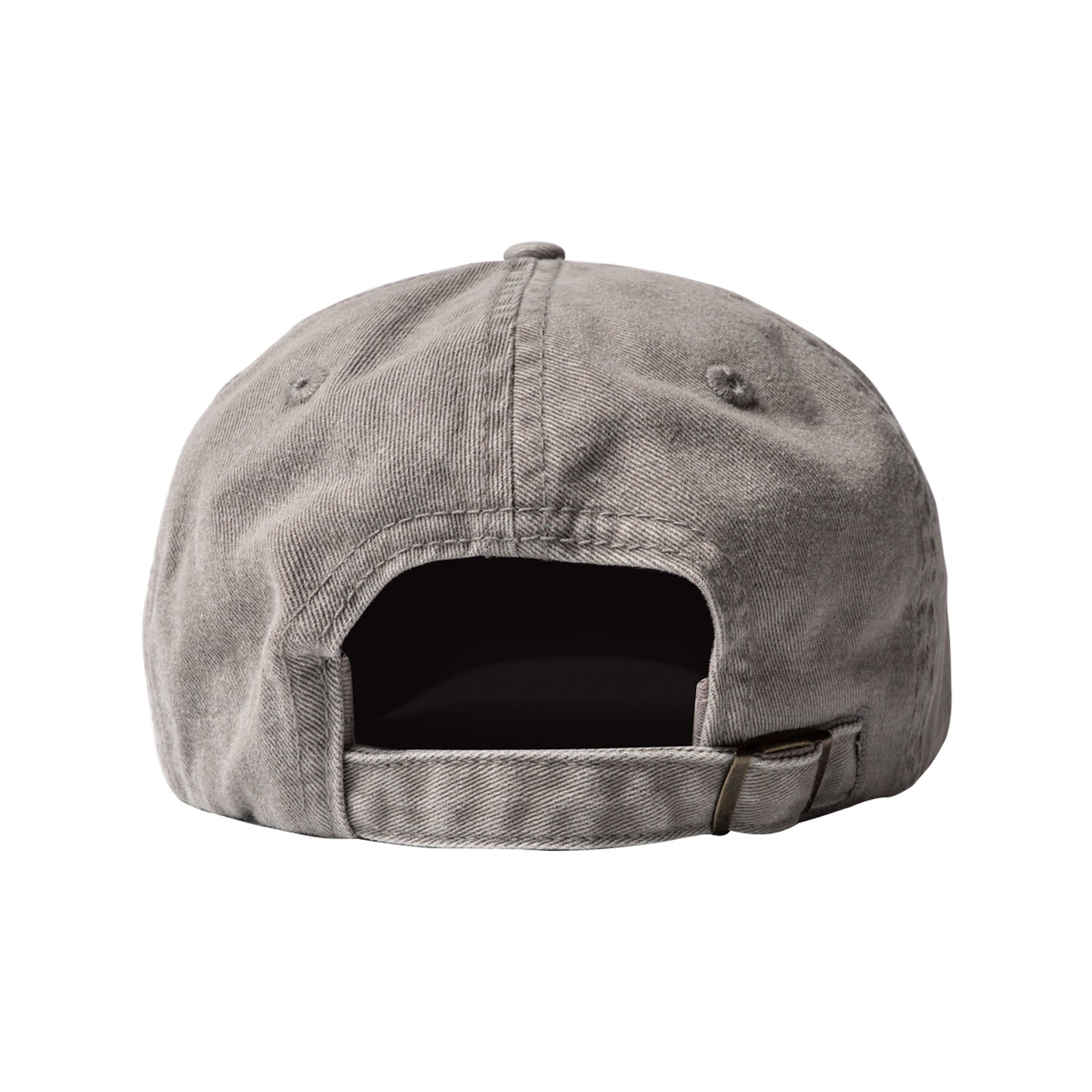Unstructured 6 panel hat with a soft crown.  Washed cotton twill with slight distressing, custom woven labels, and embroidered logos on front and brim.